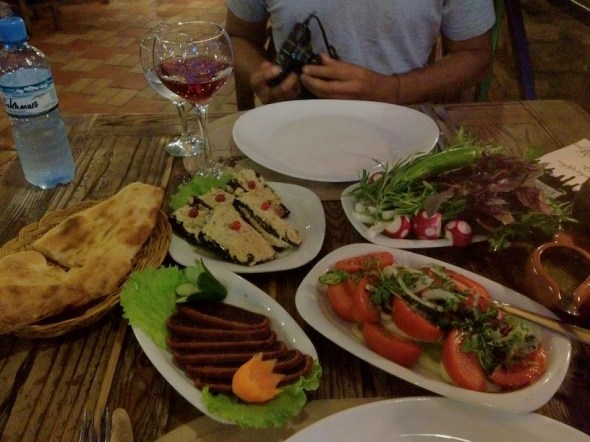Regarding places to eat out, pretty much everywhere serving Georgian food is good, with some places spectacular. As mentioned, Puris Sakhli in Tbilisi (whose name translates as “bread house”), do FANTASTIC grilled quails, as well as excellent bread straight out of the oven, as well as doing other things quite well. For a really fantastic experience, tell a taxi to take you to the restaurant Tsiskvili, which is in a rather-out-of-the-way location in the outskirts of Tbilisi. It’s an enormous, well-appointed, yet rustic place centered around a courtyard, where service, food, and entertainment are at their apex. Service was the most professional of any place I ate, the food supremely delicious, and the live music traditional, pleasant, and restrained. It’s worth noting here that many restaurants have live music, most of which is just guys with a keyboard belting out tunes at rock-concert volumes. At Tsiskvili, they have traditional instrumentalists, along with singers skilled in the classic art of Georgian polyphonic singing. Not too loud either – very nice. Cheap eateries will you fill you up from anywhere between about $4-10 a head, which can include wine or beer. More formal places run anywhere from about $15-30 a head, with the high end providing really superb stuff.